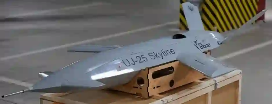 UJ-25 Skyline 基本上是 Ukrajet UJ-23 Topaz 靶机的武器化改进型。它是一种喷气式无人机,总体上具有隐形线条和独特的前掠翼。详细资料很少。据报道,俄罗斯至少发生了一起。