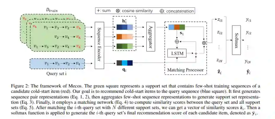 本文探讨了元学习在序列推荐中的应用,以缓解项目冷启动问题。序列推荐旨在根据用户的历史行为序列捕获用户的动态偏好,是大多数在线推荐场景的关键组成部分。然而,大多数以前的方法难以推荐冷启动项目,这在这些情况下是普遍存在的。由于在序列推荐任务的设置中通常没有附加信息,所以当只有用户-项目交互可用时,不能运用以前的冷启动方法。因此,我们提出了一种基于元学习的冷启动序列推荐框架,即Mecos,以缓解序列推荐中项目冷启动问题。这项任务不是微不足道的,因为它的目标是一个重要的问题,在一个新颖的和具有挑战性的背景下。Mecos有效地从有限的交互中提取用户偏好,并学习将目标冷启动项目与潜在用户匹配。此外,我们的框架可以轻松地集成基于神经网络的模型。在三个真实世界的数据集上进行的大量实验验证了Mecos的优越性,与最先进的基线方法相比,在HR@10的平均改进高达99%,91%和70%。