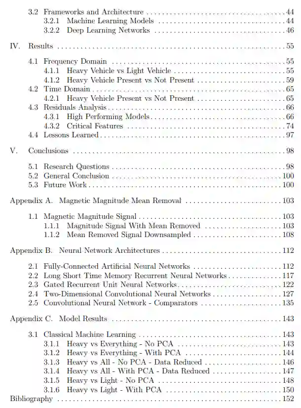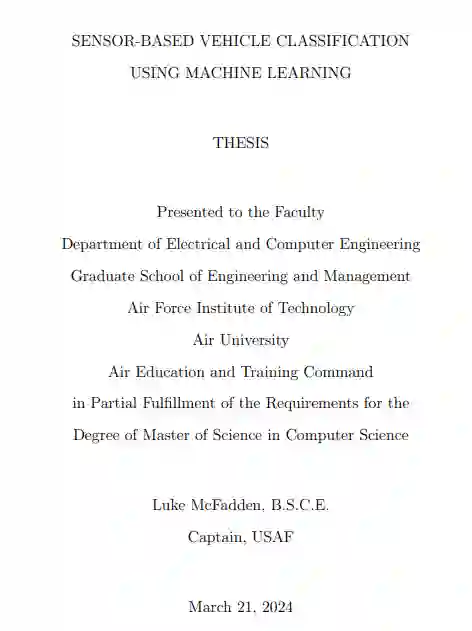 精确的车辆分类在民用交通管理系统与国防安全措施等领域至关重要。许多机构长期依赖传统频域信号处理方法完成基于传感器的车辆分类任务。近年来,随着机器学习与深度学习的突破,各机构开始重新评估现役传感器系统。通过将机器学习模型与神经网络集成到现役传感器系统中,这些机构希望提升车辆分类器的准确性。本研究收集了"重型"与"轻型"车辆的地震、声学与磁力数据。利用频域数据训练机器学习模型进行二元分类,同时使用时序数据训练神经网络。结果显示,两种方法在区分车辆类型时均表现出高精度,平衡准确率超过90%。尽管频域数据平均展现出更高平衡准确率,但神经网络使用时序传感器信号所体现的分类能力表明,需深入研究深度学习替代传统频域信号处理的潜力。