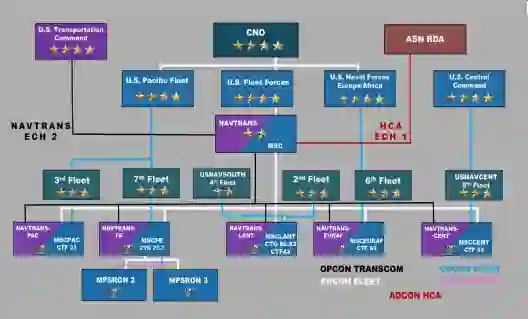 舰船维护和保障功能被整合到位于以下地点的六个地区司令部下属维护中心:意大利那不勒斯;巴林麦纳麦;新加坡;日本横滨;圣地亚哥和关岛。MSC是一个年预算约50亿美元的组织,为海军、陆军、空军、海军陆战队、海岸警卫队、太空军、美国运输司令部、导弹防御局以及其他美国政府机构提供服务。全球运营通过两个周转基金提供资金,并由海军的“运营与维护”拨款补充,以支持维护与修理。海军周转基金用于支持海军舰队指挥官及战争部其他实体。运输周转基金则用于支持海运服务。MSC直接从海军获得维护与修理的专项拨款。MSC的客户根据其需求将资金转入相应的周转基金,MSC从基金中支付司令部运营费用。本质上,MSC的资金主要来源于其客户的购买服务。与旨在盈利的私营企业不同,周转基金的目标是实现收支平衡,即向客户收取的费用与MSC的支出相等,不多不少。MSC成立于1949年,当时称为军事海上运输处,成为战争部海上运输需求的唯一管理机构。自第二次世界大战以来的每一次重大冲突中,MSC都在现场,为美国海军及全球联合部队提供至关重要的后勤和作战支持。MSC致力于通过发展新技术和新战略,在竞争性后勤环境中持续取得海上成功。未来十年,将有一批搭载现代化系统的新船交付,并发展新的舰对岸连接、无人补给、远征弹药再装填等新兴能力,以更好地支持分布式海上后勤和不容有失的任务保障。