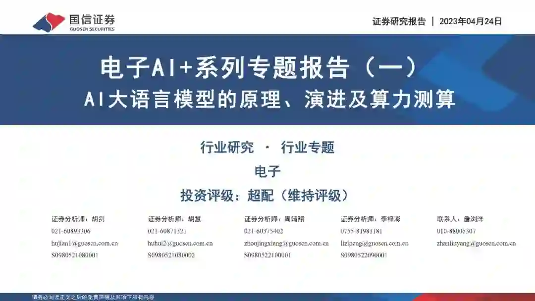 大语言模型的训练及推理应用对算力需求带来急剧提升。