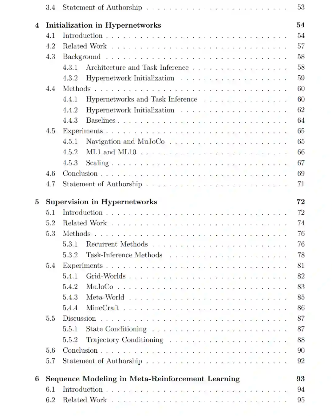 人工智能(AI)领域的一个长期目标是构建能够自主做出一系列决策以与世界交互的智能体。当智能体与环境交互时,常常会遇到先前从未见过的新情境,而此类情境往往无法由我们显式建模。在这种情况下,智能体必须通过交互来了解其环境,即通过试错过程来学习——这是强化学习(Reinforcement Learning, RL)所擅长建模的问题。 强化学习的一个核心目标是构建能够解决多样化学习任务的智能体(即具备广泛的泛化能力),同时还能从少量样本中迅速学习(即快速适应)。尽管 RL 在多个领域取得了惊人的进展,从围棋到核聚变控制等多样任务都展现了良好的泛化能力,但它依然存在样本效率低、适应速度慢的问题。 本论文探讨了元强化学习(Meta-Reinforcement Learning, Meta-RL)作为解决这些挑战的方案。在元强化学习中,智能体被直接训练以便能在一组任务分布上快速适应。然而,在广泛任务分布下实现泛化依旧是元强化学习中的重大难题。 为应对这一挑战,我们在第 4 章提出使用超网络(Hypernetworks)——即用于生成其他神经网络权重与偏置的神经网络。为了稳定地训练超网络,我们提出了一种新的初始化策略,显著提升了其泛化性能。在第 5 章中,我们进一步探讨了超网络的表现,并展示:结合我们提出的超网络,即使是简单的端到端目标函数,也能超越更复杂的设计。 第 6 章中,我们探讨了序列模型在元强化学习中的作用,特别关注对历史状态转换具有置换不变性(permutation invariance)的序列模型。理论上,这种归纳偏置足以表示最优策略,并有助于缓解梯度衰减问题。然而,我们发现引入可控的置换变异性(permutation variance)能提升架构的鲁棒性,并使模型具备表示次优策略的能力,而这些次优策略往往可以作为通向最优解的中间桥梁。 最后,在第 7 章中,我们将上述方法迁移到实际应用中,探讨了将元监督学习应用于蛋白质功能预测任务中的效果与差异。 总的来说,本论文提出了多种表示方法,显著提升了元强化学习智能体的能力。我们证明,利用超网络可以有效训练元强化学习模型,但前提是必须进行稳定的初始化;简单的端到端训练目标在超网络的加持下同样有效;而置换不变性虽然重要,但需要与置换变异性合理结合方可发挥其最大效能。通过整合这些理论与方法,我们为构建同时具备快速适应性与广泛泛化能力的 RL 智能体提供了可能路径,进一步推动了 AI 领域的核心目标。