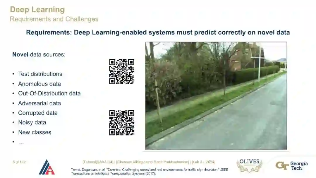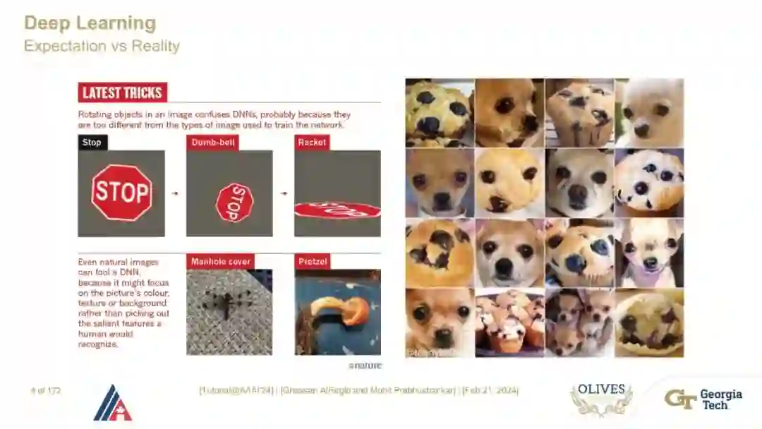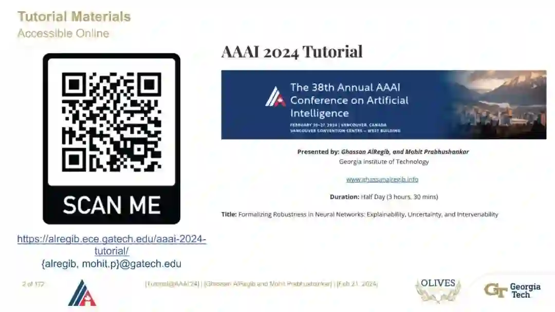 深度学习在提供大数据访问的多个领域展现了高度的适用性。随着基于深度学习的人工智能系统从学术界过渡到日常生活,必须在公众接受之前理解它们的脆弱性。一个关键的脆弱性是对神经网络操作极限的知识缺乏。这种脆弱性被视为神经网络中的鲁棒性不足。在过去,为研究社区服务的简单鲁棒性测量包括输入噪声分析和超出分布的识别。然而,拥有数十亿参数的大型视觉模型对其他工程化和对抗性噪声以及对其预测概率的未校准也很脆弱。最近,允许用户在推理阶段进行有限输入的基于提示的架构获得了突出。虽然这些提示充当干预,但它们的目标不是理解因果关系或测量鲁棒性,而是提取有限的知识。这是一个及时且相关的教程,强调了神经网络在人本测量上的鲁棒性,这有助于它们的广泛适用性。https://alregib.ece.gatech.edu/aaai-2024-tutorial/
