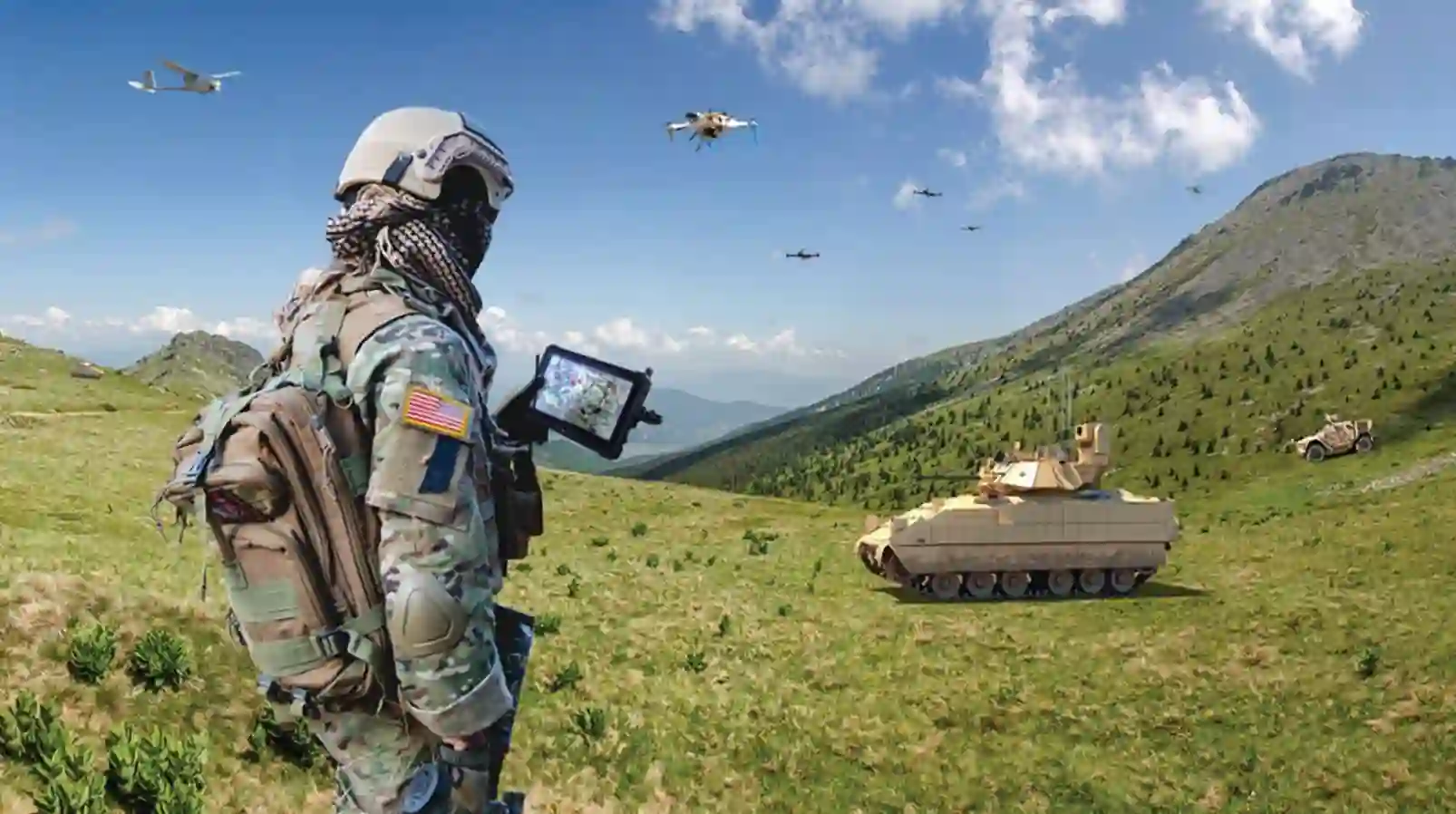 图:士兵要考虑单独或在协调行动中使用各种武器和支持系统。未来战场的特点将是一系列人工智能驱动的武器平台和支持系统,包括无人驾驶飞机和战术车辆。