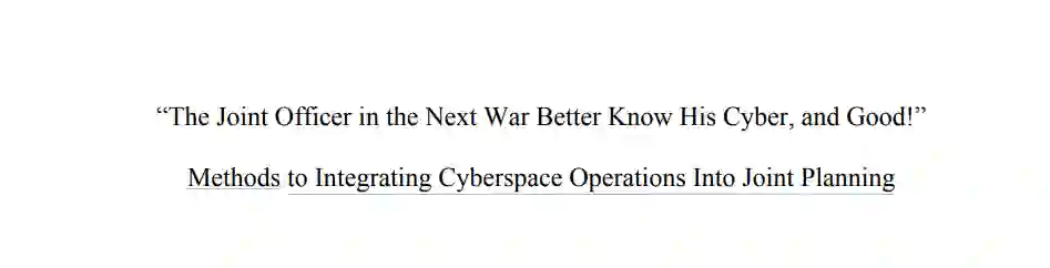 赛博空间对当前和未来的国防战意义重大,由于其复杂性和独特性,联合部队指挥官在全面整合赛博空间战方面举步维艰,他们的思维也难以向这种新型战争过渡。虽然这些挑战是巨大的,但解决这些挑战的步骤包括:使赛博空间战的条令和理论框架具有凝聚力;通过课程调整和兵棋推演将赛博空间战纳入军事教育和培训;培养理解并会宣传赛博空间战意义的高级领导人,并组织兵力有效运用赛博空间战。与哈尔西一样,这些措施将使未来的联合部队指挥官能够更好地将赛博空间战作为联合军备的一部分加以有效运用,从而战胜美国的对手。