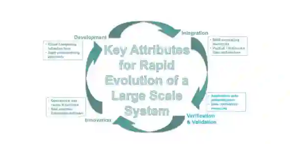 接下来,我们将介绍数据共享和互操作性环境,这些环境的建立是为了实现大规模系统的快速决策支持。这样一个环境有四个功能要求。(1)创新理念实施的低门槛,(2)大型开放的开发环境,(3)支持集成的消息传递方法,以及(4)对采用的组件进行自动验证和核实。图3显示了这四项要求的周期,并以蓝色强调了验证和确认要求,该要求目前正在系统范围内研究,是本文的重点。