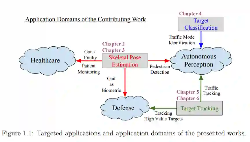 毫米波(mmWave)雷达与光学传感器不同,体积小巧、精度高、穿透力强且符合隐私保护标准,因此在多传感器应用中无处不在。然而,光学传感器的高分辨率和图像数据集的广泛可用性导致了使用光学传感器的机器学习解决方案的快速发展,从而将毫米波雷达推向了辅助传感器的角色。本论文针对医疗保健、军事和自主感知领域,介绍了一系列尝试利用传感器融合和机器学习方法增强毫米波雷达能力的新方法。首先,论文介绍了骨骼姿态估计技术,该技术可检测到 15-25 个关键点,三维定位误差小于 3 厘米,可潜在应用于病人/老年人监测、步态分析和识别以及行人监测。其次,介绍了一种自动雷达标注方案,以鼓励快速开发雷达图像数据集,帮助自主感知。这项研究还包括使用传感器融合特征向量和 12 维雷达特征向量进行目标分类,在车辆与行人检测研究中,准确率分别达到 98% 和 92%。最后,利用雷达-摄像头传感器融合技术探索了基于 DNN-LSTM 的目标跟踪方法和基于三卡尔曼滤波器的目标跟踪方法,在这两种方法中,系统不仅提高了定位精度,而且对单个传感器故障具有鲁棒性。基于 DNN-LSTM 的跟踪器的优势在于它不需要事先在雷达和摄像头之间进行校准,而且对于确定单个传感器提供的定位差异至关重要。基于三卡尔曼滤波器的方法将这些发现用于多目标跟踪,精度达到 26 厘米,与最先进的方法不相上下,漏检率小于 4%,与文献中大于 16% 的 FNR 相比有了显著提高。本研究提出的方法大大提高了感知能力,使自主系统更加安全。