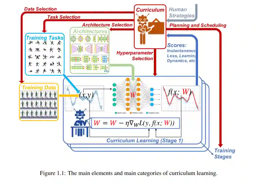 近期机器学习(ML)的成功,也被称为“人工智能(AI)的第三次浪潮”,建立在来自优化和统计领域的计算方法之上,以及大规模训练数据和计算能力的可用性,以及部分模仿人类认知功能(如卷积网络)。然而,在实际应用中,当前的机器学习技术可能非常低效,容易受到不完美数据的影响,例如,当数据嘈杂、无标签、不平衡或包含冗余、偏差、协变量漂移等时。另一方面,人类学习在规划和选择不同学习阶段的训练内容方面更具策略性和适应性。与在所有阶段重复在相同数据的随机小批量上进行训练的机器学习技术相比,人类学习在应对这些实际挑战时表现出更高的效率和鲁棒性。因此,如何为机器学习制定一个战略性的“课程”,成为缩小人类智能与机器智能差距的重要挑战。