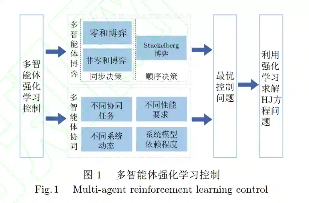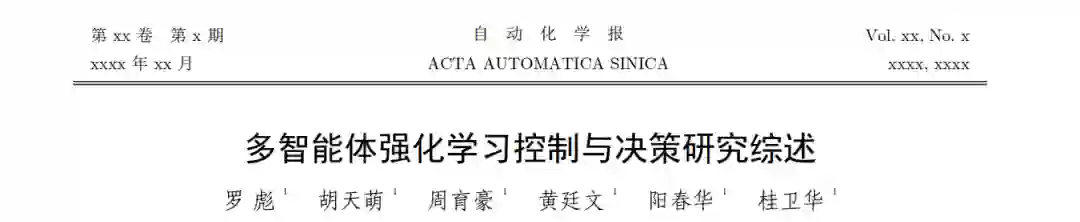 强化学习作为一类重要的人工智能方法, 广泛应用于解决复杂的控制与决策问题, 其在众多领域的应用已展示出 巨大潜力. 近年来, 强化学习从单智能体决策逐渐扩展到多智能体协作与博弈, 形成多智能体强化学习这一研究热点. 多智 能体系统由多个具有自主感知和决策能力的实体组成, 有望解决传统单智能体方法难以应对的大规模复杂问题. 多智能体 强化学习不仅需要考虑环境的动态性, 还需应对其他智能体策略的不确定性, 这增加了学习和决策的复杂度. 本文梳理多智 能体强化学习在控制与决策领域的研究, 分析其面临的主要问题与挑战, 从控制理论与自主决策两个层次综述现有的研究 成果与进展, 并针对未来的研究方向进行了展望. 通过本文的分析, 期望为未来多智能体强化学习的研究提供有价值的参考 和启示. 关键词 强化学习, 多智能体系统, 序列决策, 协同控制, 博弈论