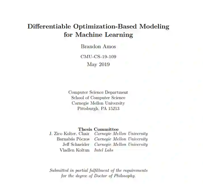 我们提出了两种基于优化的建模的基础方法。1)OptNet架构,该架构将优化问题整合为更大的端到端可训练深度网络中的各个层,以及2)输入凸神经网络(ICNN)架构,该架构有助于使基于能量的深度模型和结构化预测中的推理和学习变得更有吸引力。