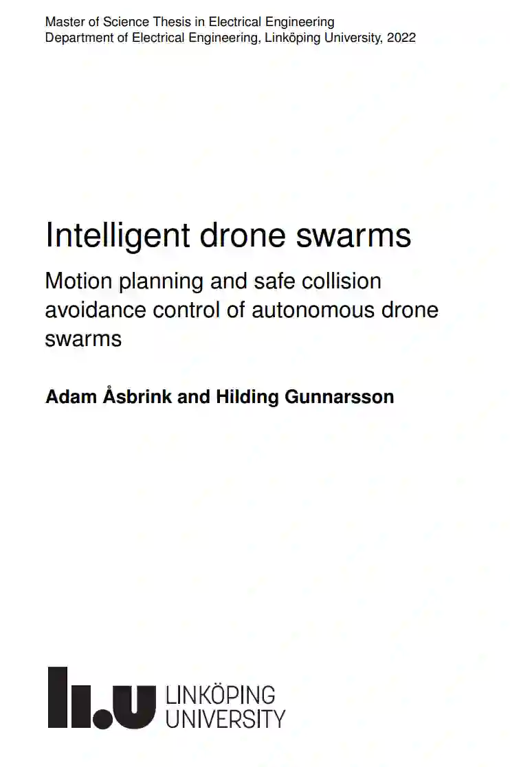 无人驾驶飞行器(UAV),即所谓的无人机的使用在过去十年中一直在迅速增长。今天,它们被用于,除其他外,监测任务和检查人们难以进入的地方。为了有效和稳健地执行这些类型的任务,可以使用无人机群,即一组无人机在一起协调。然而,这对用于控制和导航的解决方案提出了新的要求。无人机群自主导航的两个重要方面是编队控制和避免碰撞。