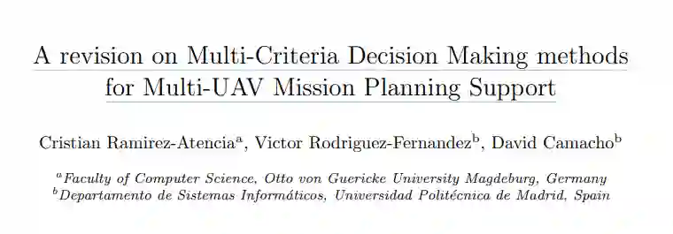 为了执行复杂的协调任务,规划系统需要更高效的问题解决能力,以应对空间和时间领域的目标冲突和严格限制。此外,这些问题通常旨在优化多个相互冲突的目标,包括燃料消耗、时间跨度、任务成本、使用的无人机数量以及可能危及任务的不同风险因素等。因此,所谓的多无人机合作任务规划问题(MCMPP)最近在研究界获得了强劲的发展势头,其推动力是在不久的将来,无人机的应用规模和数量将显著增加(Ramirez-Atencia 等人,2017b)。