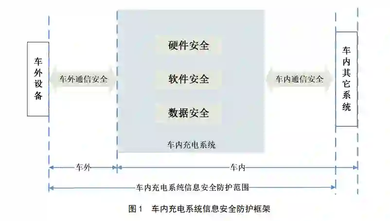 车内充电系统信息安全由硬件安全、软件安全、数据安全和通信安全四部分组成,通信安全涉及车内通信安全和车辆对外通信安全。车内充电系统的信息安全目标是通过提出硬件、软件、数据和通信等方面的安全技术要求,防护车内充电系统面临的充电数据被窃取、个人隐私泄露和车内数据被窃取等风险