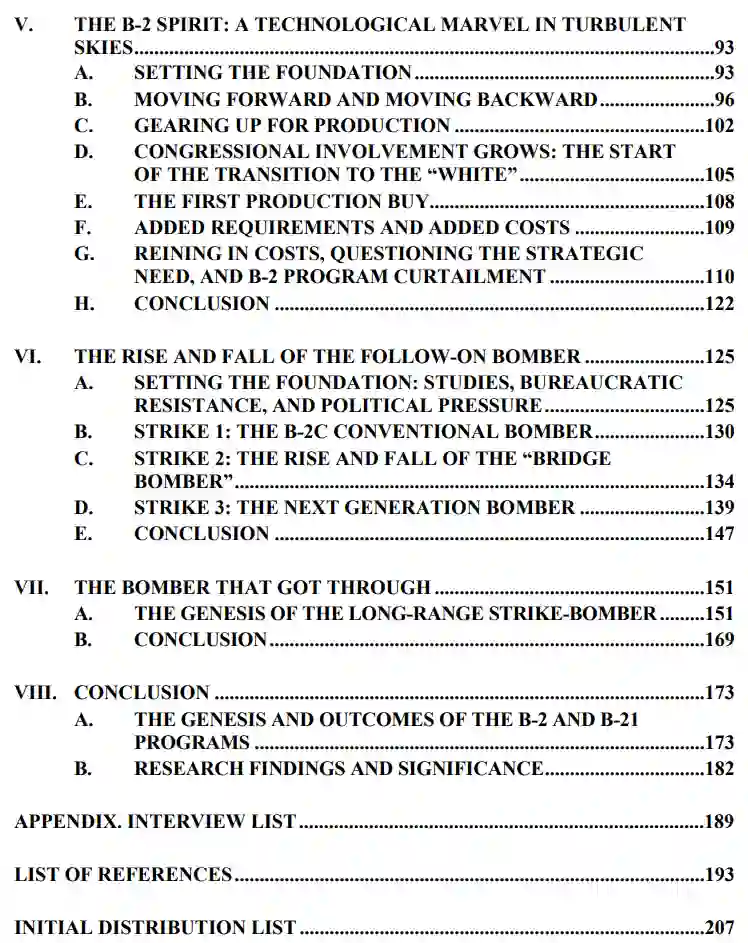 本研究的核心在于阐释美国决定研发B-21隐形轰炸机的动因与决策路径。作为B-52"同温层堡垒"轰炸机的最新继承者(严格意义上并非替代品),B-21"突袭者"延续了其前代机型B-2"幽灵"四十余年前的研发初衷。通过解析B-2的诞生历程及其未能达成预期生产目标的深层原因,我们得以洞察B-21项目的战略逻辑。基于国防采办理论中的四大主导因素——官僚政治、技术演进、政治环境与战略需求——对B-2与B-21展开比较分析后发现:只有当所有要素形成合力时,新型轰炸机项目方能启动;而B-2项目的夭折恰源于这些要素的失衡。尽管B-21项目的最终成效尚待验证,但现有迹象表明其已汲取B-2早期失败的制度性教训,预示其或将规避相似命运。本研究的历史贡献与相关发现,对国防采办从业者、军事精英、国会、学者及历史研究者具有重要参考价值。