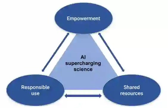 图 1. 负责任地使用、共享资源和增强能力的良性循环,以利用人工智能加速科学研究。本报告从多个方面探讨了这种相互作用。