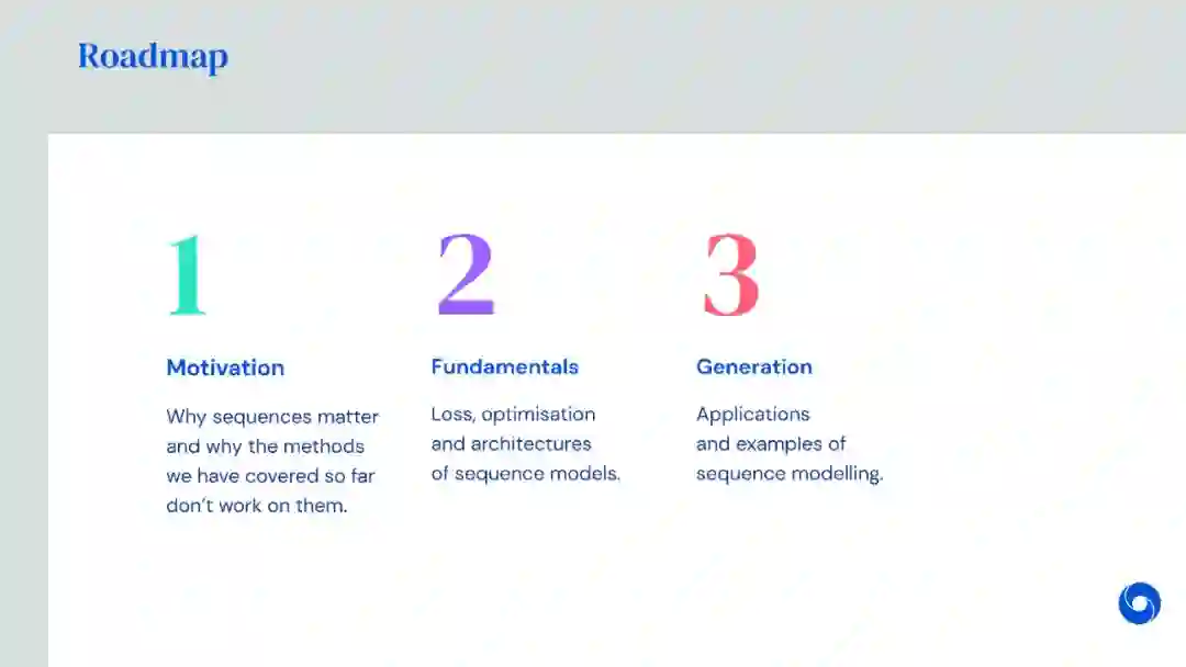 在本课中我们将专注在序列数据上并讲解机器学习方法如何来处理这种类型的数据。我们首先介绍关于序列建模的基础概念,包括常用架构如RNN、LSTM。随后我们将介绍序列到序列解码和他的应用。