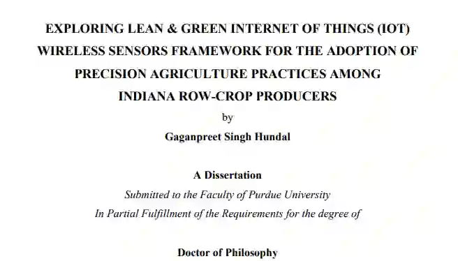 本研究的范围,通过物联网 (IoT) 基于无线传感器的精准农业技术在中西部(印第安纳州)地区的作物生产者中探索精益和绿色实践,以实现强劲的经济和环境可持续性表现。本研究中进行的结构化文献综述的范围仅限于美国中西部(印第安纳州)地理区域。该研究的重点是回答当前对基于物联网无线传感器的精准农业技术(智能灌溉、智能施肥、监测作物病害和农机导航)的问题的采用和理解,以用于精益和绿色农业生产的采用和部署。基于物联网无线传感器数据管道中涉及的决策变量以及通过解释结构建模 (ISM) 的每个变量之间的关系,研究结果和成果侧重于填补知识空白。本论文还通过基于物联网无线传感器的精准农业应用,以及行动研究部署的比较和 ISM 框架模型的实证测试,推荐了专注于精益绿色采用的解决方案。