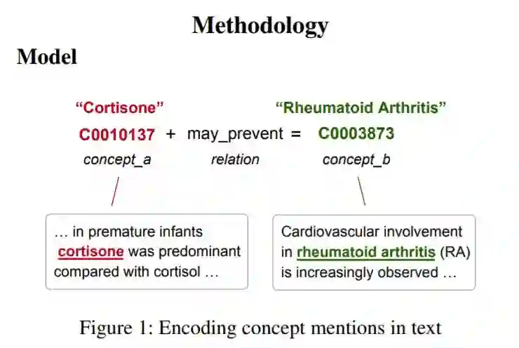 对于自然语言理解任务来说,外部知识通常是有用的。我们介绍了一个上下文文本表示模型,称为概念上下文(CC)嵌入,它将结构化的知识合并到文本表示中。与实体嵌入方法不同,我们的方法将知识图编码到上下文模型中。就像预先训练好的语言模型一样,CC嵌入可以很容易地在广泛的任务中重用。我们的模型利用语义泛化,有效地编码了庞大的UMLS数据库。在电子健康记录(EHRs)和医疗文本处理基准上的实验表明,我们的模型大大提高了监督医疗NLP任务的性能。