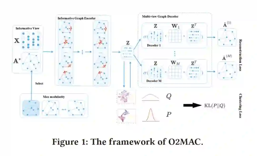 摘要:多视图图聚类(Multi-view graph clustering)近年来受到了相当大的关注,它是一种寻找具有多个视图的图的分割方法,通常提供更全面但更复杂的信息。虽然多视图图聚类已经做了一些努力并取得了较好的效果,但大多数都是采用浅层模型来处理多视图间的复杂关系,这可能会严重限制多视图的图信息建模能力。本文首次尝试将深度学习技术应用于属性多视图图聚类,提出了一种新的任务导向的One2Multi图自编码器聚类框架。One2Multi图自编码器能够通过使用一个信息丰富的图形视图和内容数据来重建多个图形视图来学习节点嵌入。因此,可以很好地捕捉多个图的共享特征表示。在此基础上,我们还提出了一种自训练聚类目标,以迭代地改善聚类结果。通过将自训练和自编码器重构集成到一个统一的框架中,我们的模型可以联合优化适用于图聚类的簇标签分配和嵌入。在真实属性多视图图数据集上的实验很好地验证了该模型的有效性。