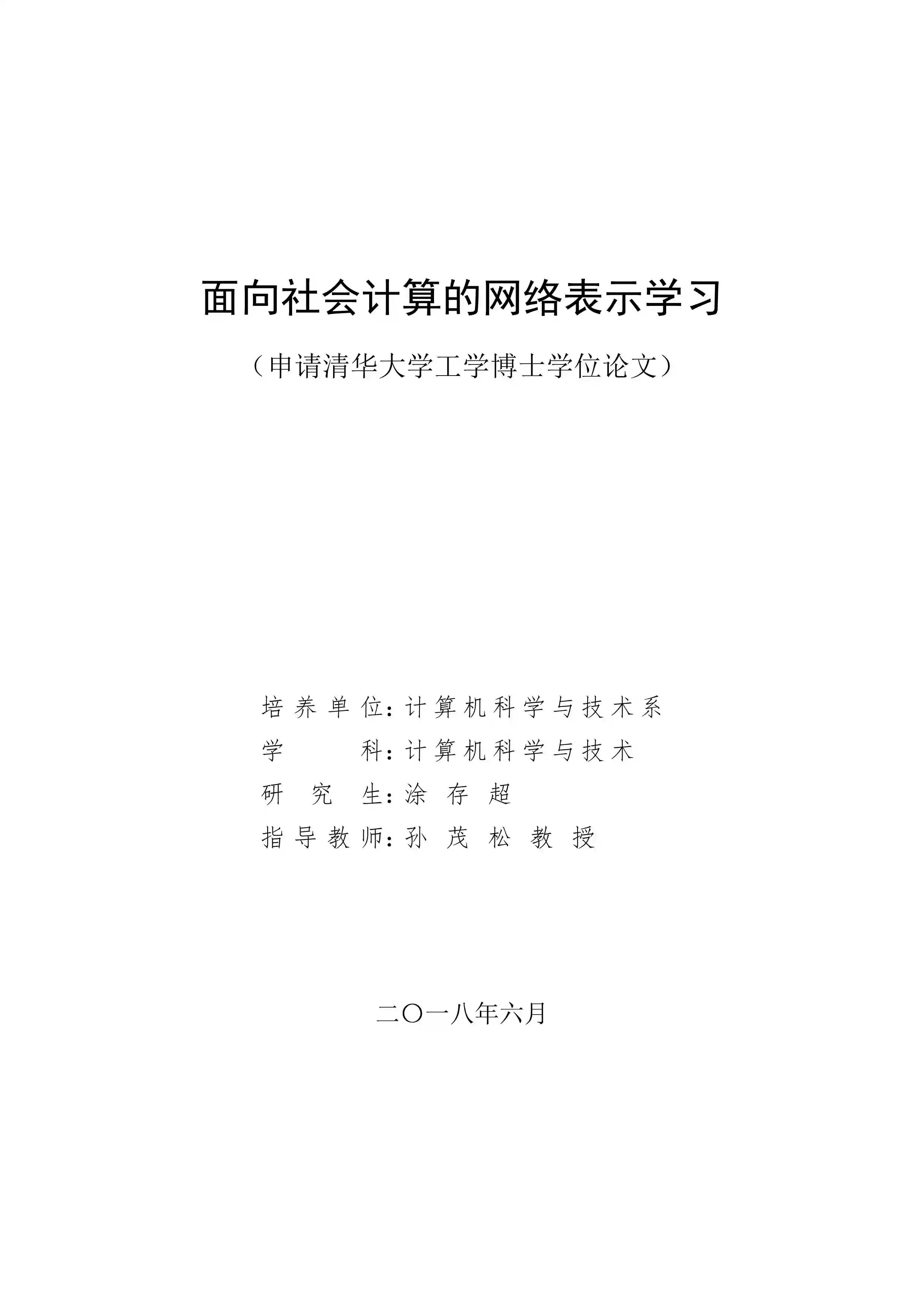 导师:孙茂松, 刘知远