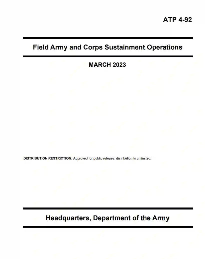 ATP 4-92是为了描述在野战军和军团梯队中运作的维持组织。它是为各级指挥官、参谋人员和士兵、军事机构的领导和教官、学生以及理论和培训开发人员编写的。它为野战军和军团梯队的陆军维持组织提供了相关信息,重点是为支持多域作战的远征维持指挥部、维持旅和作战维持支援营。