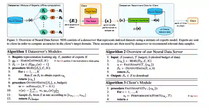 简介: 事实证明,迁移学习是在缺乏训练数据的领域中训练深度学习模型的成功技术。主要方法是在大型通用数据集(例如ImageNet)上预训练模型,并在目标域上确定其权重。但是,在海量数据集数量不断增加的新时代,选择相关数据进行预训练是一个关键问题。我们引入了神经数据服务器(NDS),这是一个大型搜索引擎,用于将最有用的传输学习数据查找到目标域。我们的NDS由一个数据服务器组成,该数据服务器为几个大型的流行图像数据集建立索引,并旨在将数据推荐给具有目标应用程序的最终用户的客户端,该应用程序具有自己的小标签数据集。就像在任何可能为众多用户提供信息的搜索引擎中一样,我们希望数据服务器执行的在线计算最少。数据服务器代表具有更紧凑的专家混合模型的大型数据集,并使用它以低计算量在一系列数据服务器-客户端事务中执行数据搜索。我们展示了NDS在各种迁移学习场景中的有效性,展示了在一些目标数据集和任务(例如图像分类,对象检测和实例分割)上的最新性能。