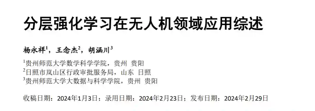 分层强化学习是强化学习领域的一个重要分支。基于分而治之的思想,将一个复杂问题分解成多个子问题,最终解决整个问题。近年来,由于传感器能力的提高和人工智能算法的进步,基于分层强化学习的无人机自主导航成为研究热点。本篇文章对国内外发表的具有代表性的文章进行概述,首先分析无人机和分层强化学习的含义,其次重点研究了分层强化学习在无人机轨迹规划和资源分配的优化问题上的应用。 强化学习在无人机领域开始广泛的适用。近年来,无人驾驶飞行器(以下简称无人机)因灵活性高、成本低等优点。在军事和民用领域得到了广泛的应用。包括探查和搜索、环境侦测、救援任务等。当无人机在处理具体问题时,例如传统的无人机导航方法需要通过构建精确的环境或依赖专家经验人为设置规则。或者作为通信中站传统的方法很难解决优化问题。不同于传统的方法,基于强化学习的方法在于它能够通过不断的试错和学习,优化无人机的决策策略,使其能够更好地适应不同的环境和任务。其次,强化学习可以使无人机具备自主学习和适应能力,而无需人工预先编程所有可能的情况和行为。这种自主学习能力使得无人机更灵活、智能,并能够应对未知或复杂的环境。特别是近年来深度强化学习取得了快速发展,利用深度学习强大的感知与拟合能力学习高维环境状态到控制动作之间的映射,从而能够获得更好的策略。