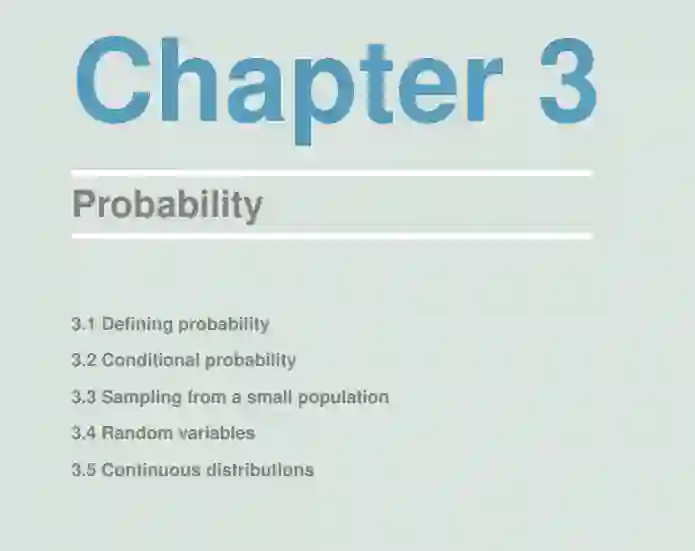 OpenIntro Statistics涵盖了统计的第一门课程,提供了应用统计的严格介绍,清晰,简洁,可访问。这本书是为本科水平而写的,但它在高中和研究生课程中也很受欢迎。我们希望读者能从本书中获得三个观点,除此之外,还能形成统计思维和方法的基础。
