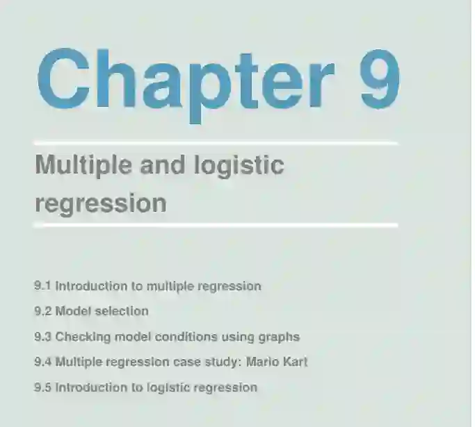 9. 多元和逻辑回归。使用多种预测器对数值和分类数据进行回归。