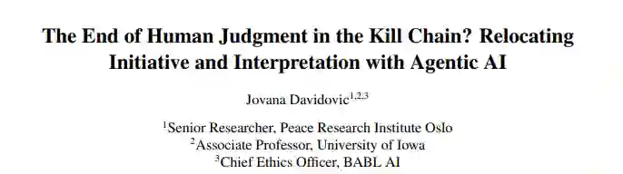 基于大语言模型的智能体正日益被集成到核心战场功能中,包括情报分析、数据融合和战场管理。本文认为,正是那些使此类智能体在操作上具有吸引力的特性——即其主动性、解释能力、目标导向性和动态记忆——使得在智能体运作的杀伤链环节中,与环境相适应的人类判断与控制实质上变得无效。通过分析具体用例,本文论证了基于大语言模型的智能体通过重置主动权与解释权,以某种方式取代了人类决策,这种方式使其应用与人类判断和控制的要求不相容,而这一要求是现有治理框架(如《特定常规武器公约》政府专家组和“负责任人工智能军事应用”峰会所提出的框架)的核心。本文的结论是,在目前及可预见的条件下,一部分AI智能体应用,特别是那些在致命情境中部署用于数据融合和战场管理的应用,无法在战场上被合理地使用,并提出了国际治理界应对这一挑战的两种途径。
