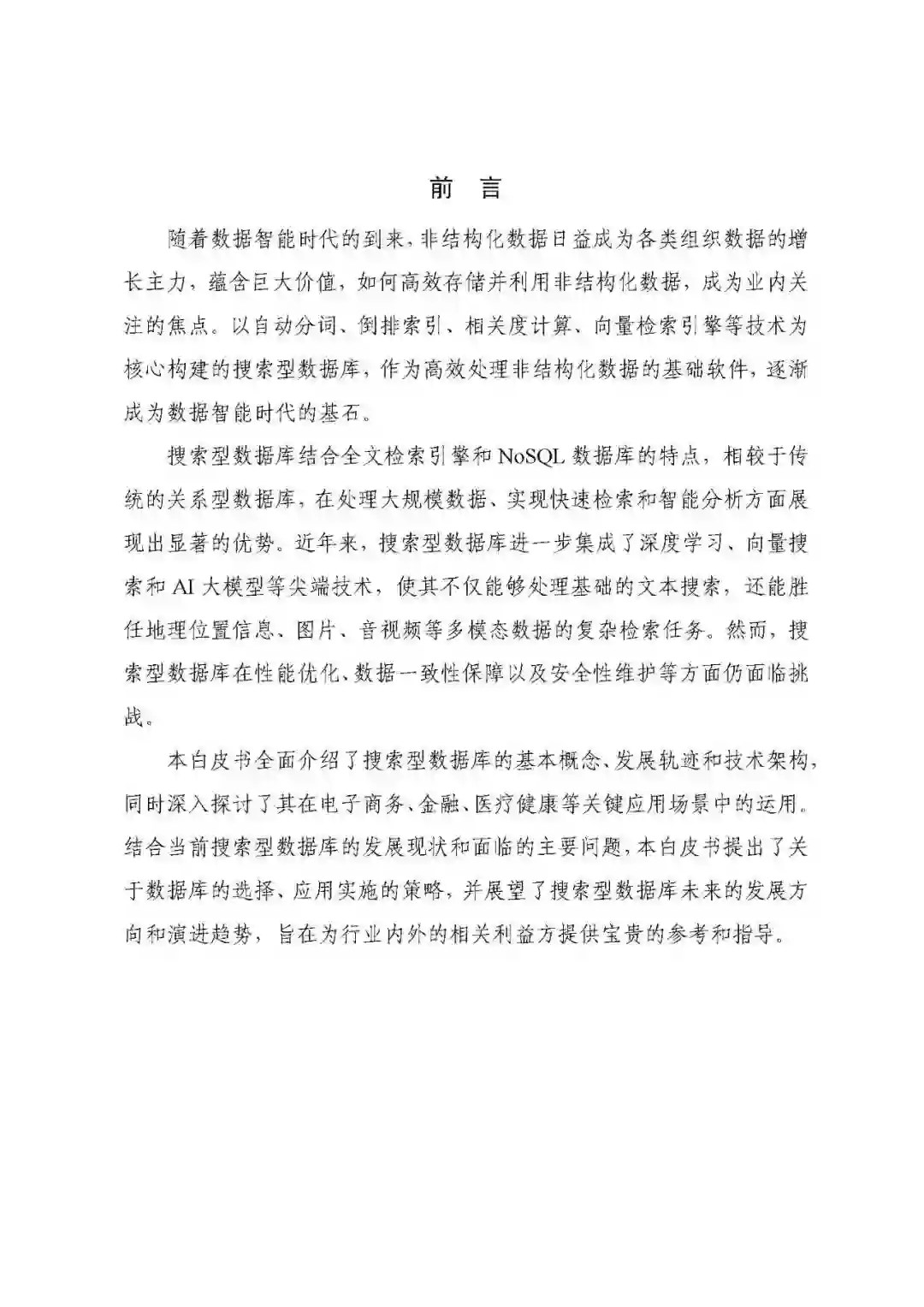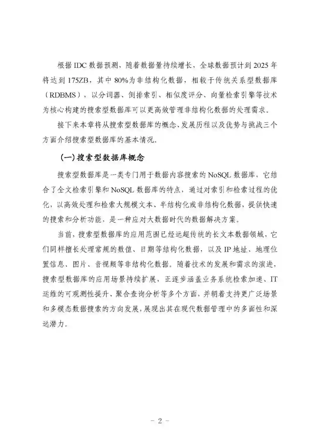 - 人工智能与搜索型数据库的结合 强调人工智能技术在搜索型数据库中的应用前景,如个性化推荐和智能搜索等。