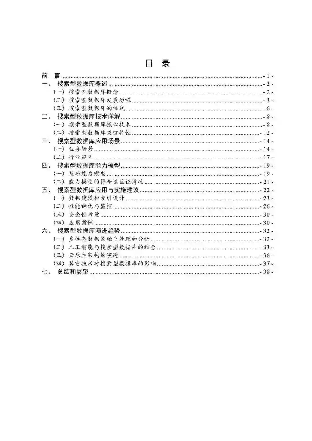 (2)搜索型数据库发展历程 (3)搜索型数据库的挑战 二、搜索型数据库技术详解 (1)搜索型数据库核心技术 (2)搜索型数据库关键特性 三 三、搜索型数据库应用场景 (1)业务场景 (2)行业应用 四、搜索型数据库能力模型 (1)基础能力模型 (2)能力模型的符合性验证情况 五、搜索型数据库应用与实施建议 (1)数据建模和索引设计 (2)性能调优与监控 (3)安全性考量 (4)应用案例 六、搜索型数据库演进趋势 (1)多模态数据的融合处理和分析 (2)人工智能与搜索型数据库的结合 (3)云原生架构的演进 (4)其它技术对搜索型数据库的影响 ![]()