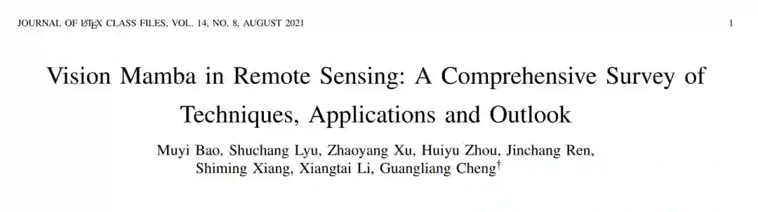 遥感领域的最新进展通过深度学习方法取得了显著的进展,尤其是在从复杂数据中提取特征方面[1],[2]。传统架构,特别是卷积神经网络(CNNs)和视觉变换器(ViTs)[3],[4],在这一领域取得了显著的成功。然而,遥感影像的固有特征对基于CNN和ViTs的网络的进一步优化构成了挑战:(1)丰富的空间依赖关系:遥感影像展现了复杂的空间关系,这些关系往往超出了CNN的局部建模能力,尽管CNN具有线性计算复杂度和多功能建模能力[5]–[7];(2)高分辨率:遥感影像的超高分辨率对基于Transformer的模型提出了巨大的计算需求,往往导致不可接受的计算复杂度。尽管存在这些固有限制,CNN和ViT长期以来主导了遥感应用,促使研究人员探索能够以线性计算效率实现全局建模的架构。 为了解决这些挑战,基于状态空间模型(SSM)的方法作为一种有前景的替代方案应运而生,提供了线性计算复杂度和全局建模能力。这两大特性恰好克服了CNN和ViT在遥感应用中的局限性。SSM源自经典系统理论,已经在强化学习[8]、计算神经科学[9]和控制系统[10]等多个学科中得到了广泛应用。SSM将输入序列映射到潜在状态,这些状态封装了历史上下文,从而使得根据隐藏状态进行序列预测成为可能。一些研究尝试将SSM融入深度学习框架[11]–[21]。早期的SSM实现面临计算瓶颈,直到结构化状态空间序列(S4)模型[11]通过参数化状态矩阵解决了这些限制。随后,Mamba[20]引入了选择性状态空间序列(S6),通过回归步长参数结合动态时间感知机制,实现了通过隐藏状态的上下文感知信息传播或遗忘。Mamba架构[20]通过简化的门控SSM块进一步推进了这一范式,取得了最先进的(SOTA)性能。凭借其在高分辨率影像上的线性可扩展性、捕获远程空间依赖关系的能力以及卓越的特征表示能力,基于Mamba的架构展现出了作为下一代遥感任务解决方案的强大潜力,弥合了计算效率与全局建模之间的差距。 Mamba技术最初是为自然语言处理(NLP)开发的,经过标志性研究[20],迅速扩展到计算机视觉(CV)领域。与ViT[3]类似,创新的基于Mamba的架构,如视觉Mamba(Vim)[22]和视觉Mamba(VMamba)[23],采用补丁嵌入和多方向扫描策略,将2D图像转换为1D序列,使其与Mamba的处理范式兼容。基于这些基础工作,遥感社区迅速探索了Mamba的潜力,许多研究[24]–[36]已将Mamba架构应用于克服特定领域的挑战。这些创新推动了基于Mamba的模型在各种遥感任务中取得SOTA性能,包括目标检测[24]–[26]、密集预测[27]–[30]等。 尽管已有若干综述[1],[37]–[41],它们往往强调特定于自然影像的问题解决方法,常常忽视或低估遥感影像的独特特性。因此,我们进行了一项专门针对遥感领域的综合综述,详细介绍了Mamba技术在该领域的当前研究进展、应用及潜在的未来趋势。据我们所知,这是第一篇关于视觉Mamba技术在遥感中的综述,将进一步惠及遥感领域。 贡献:本综述在Mamba基础架构在遥感领域的新兴研究中做出了若干重要贡献。首先,我们系统地介绍了Mamba的基础概念,随后简要回顾了大约20篇关于视觉Mamba主干架构的论文。接着,我们回顾并汇总了约120篇遥感领域的论文。我们的分析从微观和宏观架构两个视角进行,提供了对遥感领域Mamba进展的全面理解。 微观架构进展:我们考察了Mamba块内部机制的三项关键进展: * SSM公式优化:虽然Mamba[20]为深度学习提供了SSM的初步适应,随后的工作进一步优化了这一公式。我们是首个系统地回顾该领域SSM公式改进的研究。 * 扫描策略:我们提出了一种新的扫描策略分类法(对将2D/3D影像处理为1D序列至关重要),包含五个要素:预处理、扫描采样、扫描方向、扫描模式和后处理。该框架首次全面地将预处理和后处理阶段纳入扫描策略。 * 多模态与双时序特征交互:专注于遥感应用,我们将现有方法分为四种不同的方式来处理多模态数据和双时序交互。我们的分析提供了基于Mamba架构的多模态与双时序交互的首个详细审视。