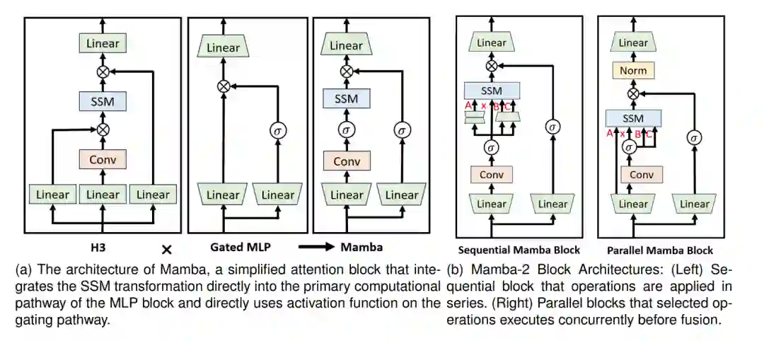 宏观架构进展:我们分析了四项创新进展,推动整体架构的进展: * 混合架构:我们分析了Mamba与CNN和Transformer的整合,考察了基本堆叠块和整体架构设计。 * 框架适配中的替代:我们调查了Mamba块如何融入现有框架,如U-Net[42]、YOLO[43]和扩散模型[44]。 * 学习范式:除了传统的监督学习外,我们的综述还涵盖了无监督学习、自监督学习和提示学习范式的应用。 * 频域操作:我们记录了将频域操作(如快速傅里叶变换、2D离散余弦变换和小波变换)融入Mamba架构的实现。