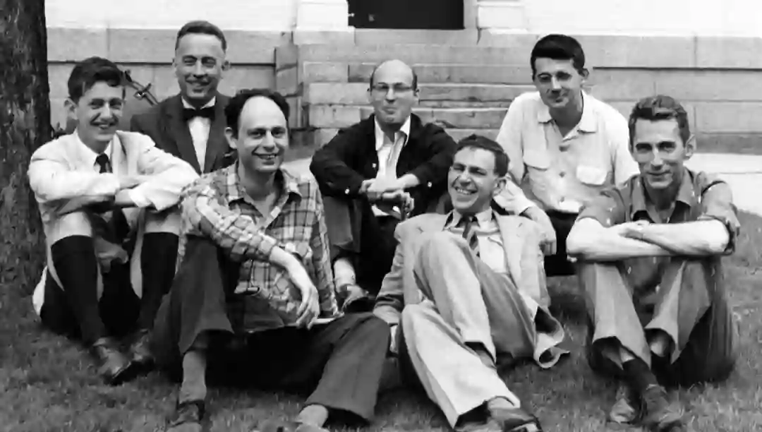 1956 年达特茅斯人工智能会议的参与者:马文 · 明斯基、克劳德 · 香农 、雷 · 所罗门诺夫和其他科学家。摄自:Margaret Minsky