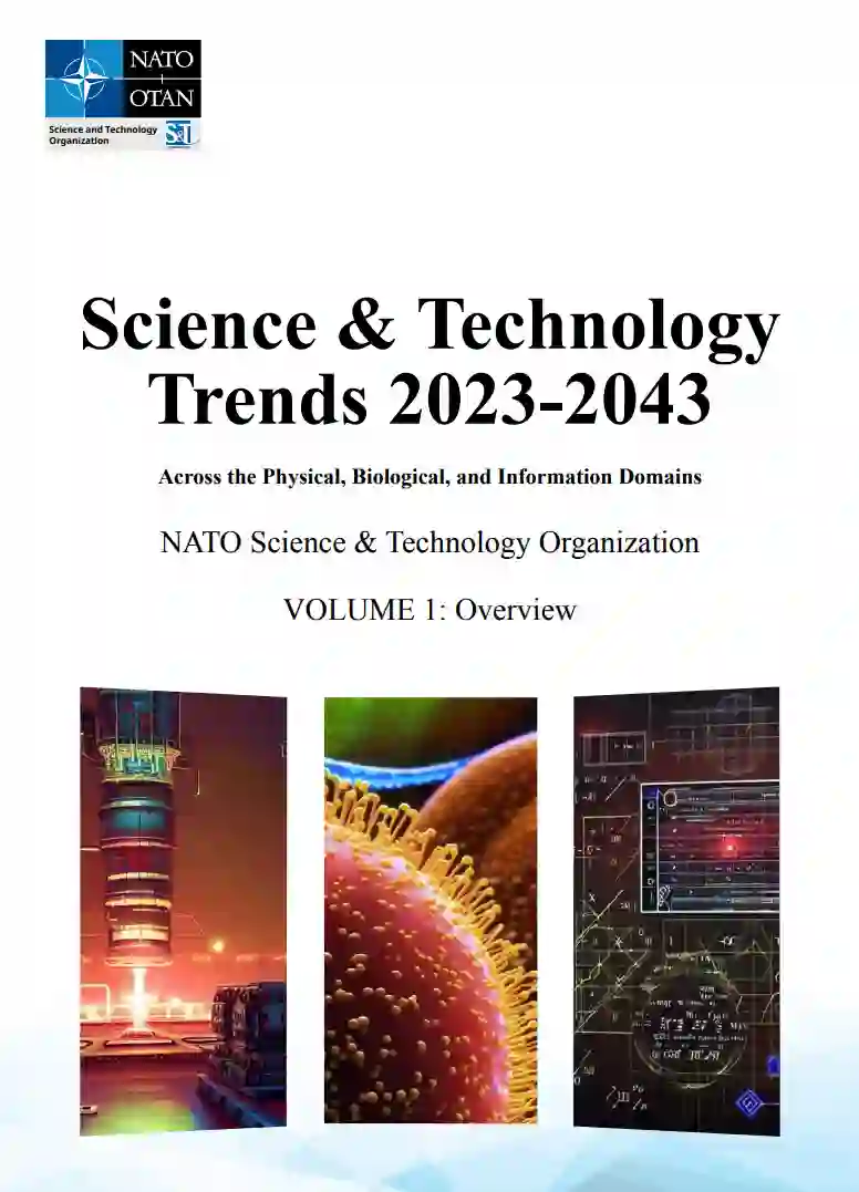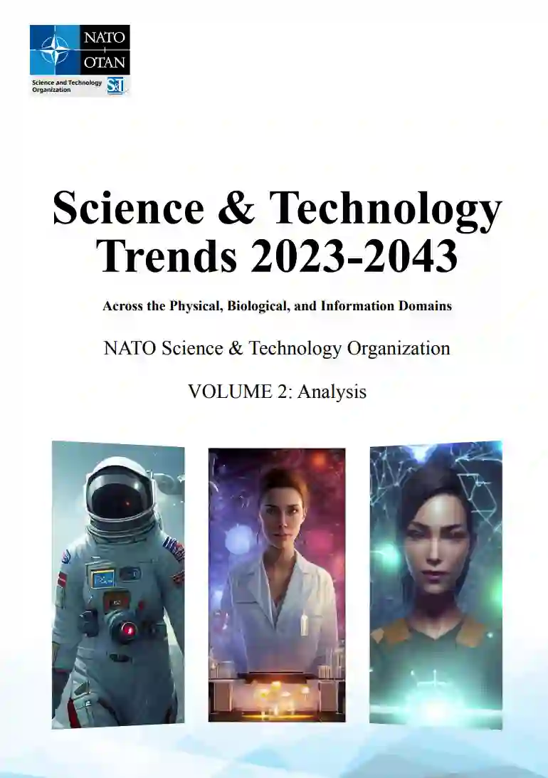 《科学技术趋势2023-2043》对科学技术(S&T)趋势及其对北约军事行动、防御能力、企业职能和政治决策空间的潜在影响进行了评估。该评估借鉴了北约科学与技术组织(STO)的集体见解和研究活动,其协作网络由五千多名活跃的科学家、分析师、研究员、工程师和相关研究设施组成。这些见解与对开源科技文献、选定的国家研究计划、北约STO技术观察活动、(严肃)研究游戏、STO CPoW(合作工作计划)活动以及北约创新努力的广泛审查相结合。该报告分为两卷,包括总体结论(第一卷)和详细分析(第二卷)。