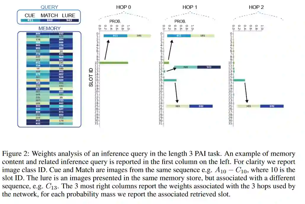 摘要: 近年来开发具有外部存储器的神经网络结构的研究经常使用基准bAbI问答数据集,该数据集提供了许多需要推理的具有挑战性的任务。在这里,我们采用了一个经典的联想推理任务从内存为基础的推理神经科学文献,以便更仔细地探索现有内存增强架构的推理能力。这项任务被认为是抓住了推理的本质——欣赏分布在多个事实或记忆中的元素之间的遥远关系。令人惊讶的是,我们发现当前的架构很难对长距离关联进行推理。在一个更复杂的任务中,包括寻找路径中节点之间的最短路径,也得到了类似的结果。因此,我们开发了MEMO,一种具有远距离推理能力的架构。这是通过添加两个新组件实现的。首先,它将存储在外部存储器中的存储器/事实与构成外部存储器中这些事实的项分离。第二,它使用了一种自适应检索机制,在产生答案之前允许可变数量的“内存跳跃”。