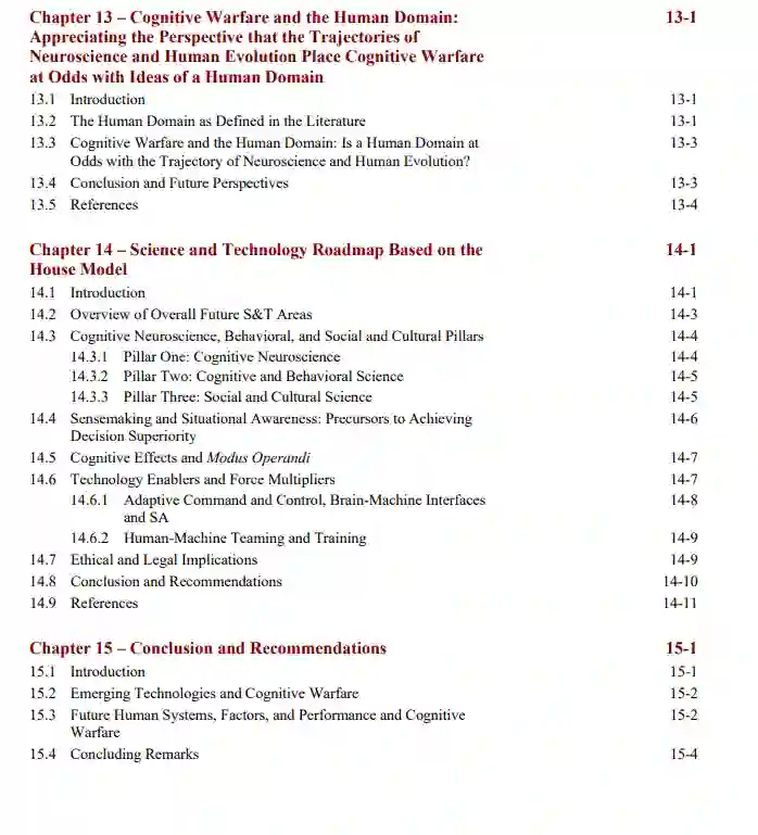 CogWar使对手有能力塑造人类的认知、感知、感觉、态势感知和各个层面的决策。故意(误)用数字网络中的信息并在社交媒体等各种平台上进行全球传播的能力,为对手带来了新的工具和方法。CogWar还旨在破坏关系,并针对个人和国家层面的人类脆弱性,如信任和认知偏见,其影响遍及所有作战领域。本报告概述了减轻和抵御 "逻辑战争 "所需的关键科技领域。