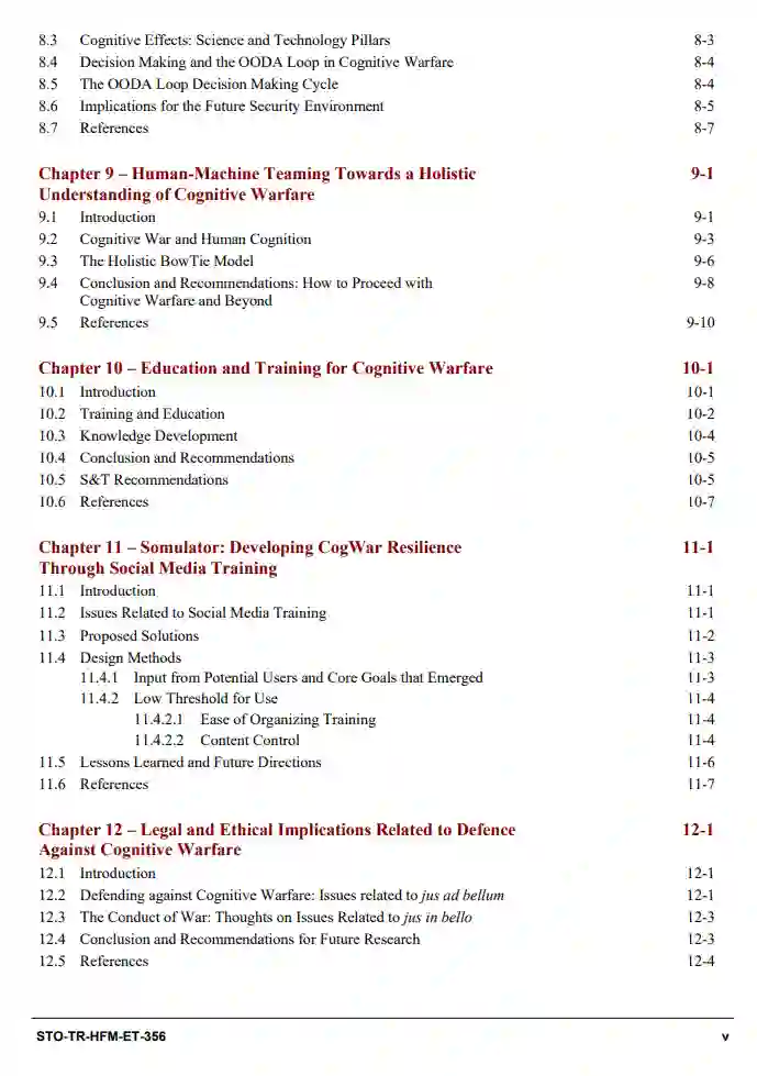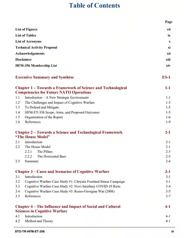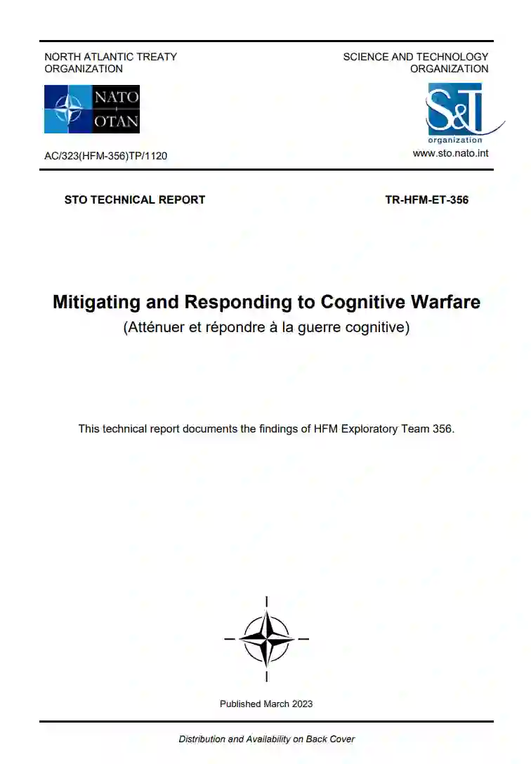 本报告为北约科技组织内部的未来研究、盟国和国家科技投资提供了指导,以防御当前和未来的认知战争,并加强北约的技术优势和对抗认知战争的战略优势。HFM ET-356的工作支持了北约作战顶点概念及其认知优势的战争发展倡议,以及2022年北约马德里峰会上宣布的新的北约战略概念。