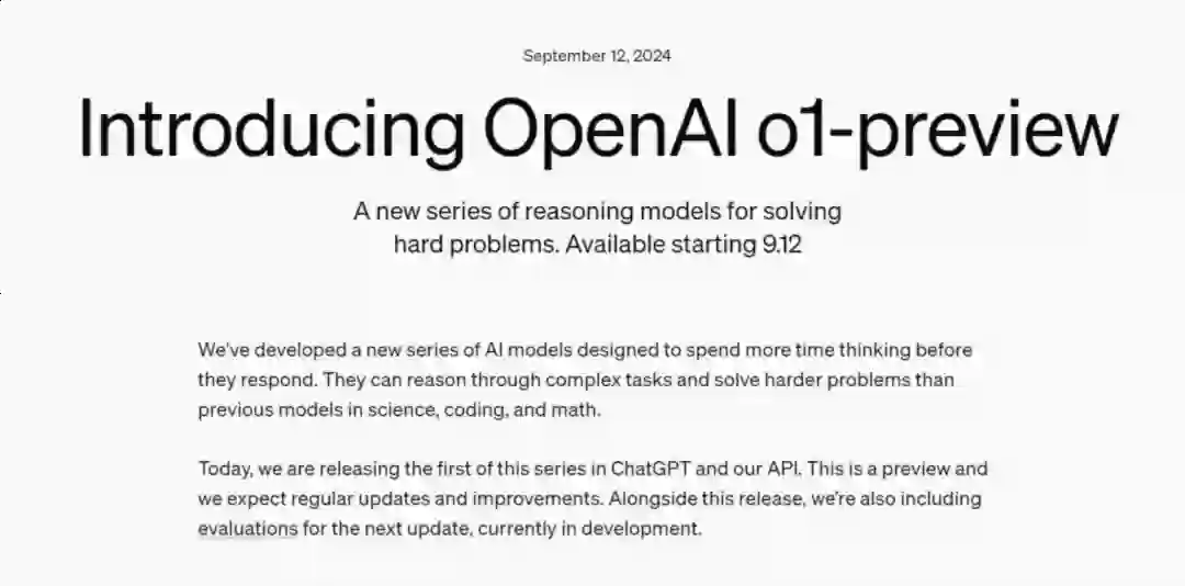 OpenAI 的 o1 模型:推理能力的突破 2024 年最重要的模型更新非 OpenAI 的 o1 莫属(之前称为 Q*,也被称为草莓,Strawberry)。它不仅巩固了 OpenAI 的领先地位,更是首个具备真正通用推理能力的模型,o1 通过“推理时计算”实现了这一点。