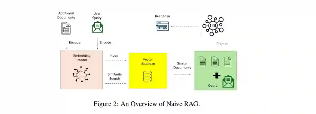 2.3 RAG范式的演进RAG范式经历了从简单到复杂的演进过程,逐步适应了现实世界应用中对上下文准确性、可扩展性和多步推理的需求。以下是RAG范式的主要演进阶段: 2.3.1 Naive RAGNaive RAG是RAG的最基础实现,依赖于简单的关键词检索技术(如TF-IDF和BM25)从静态数据集中获取文档。尽管Naive RAG易于实现,但其缺乏上下文意识,生成的响应往往过于碎片化或泛化。