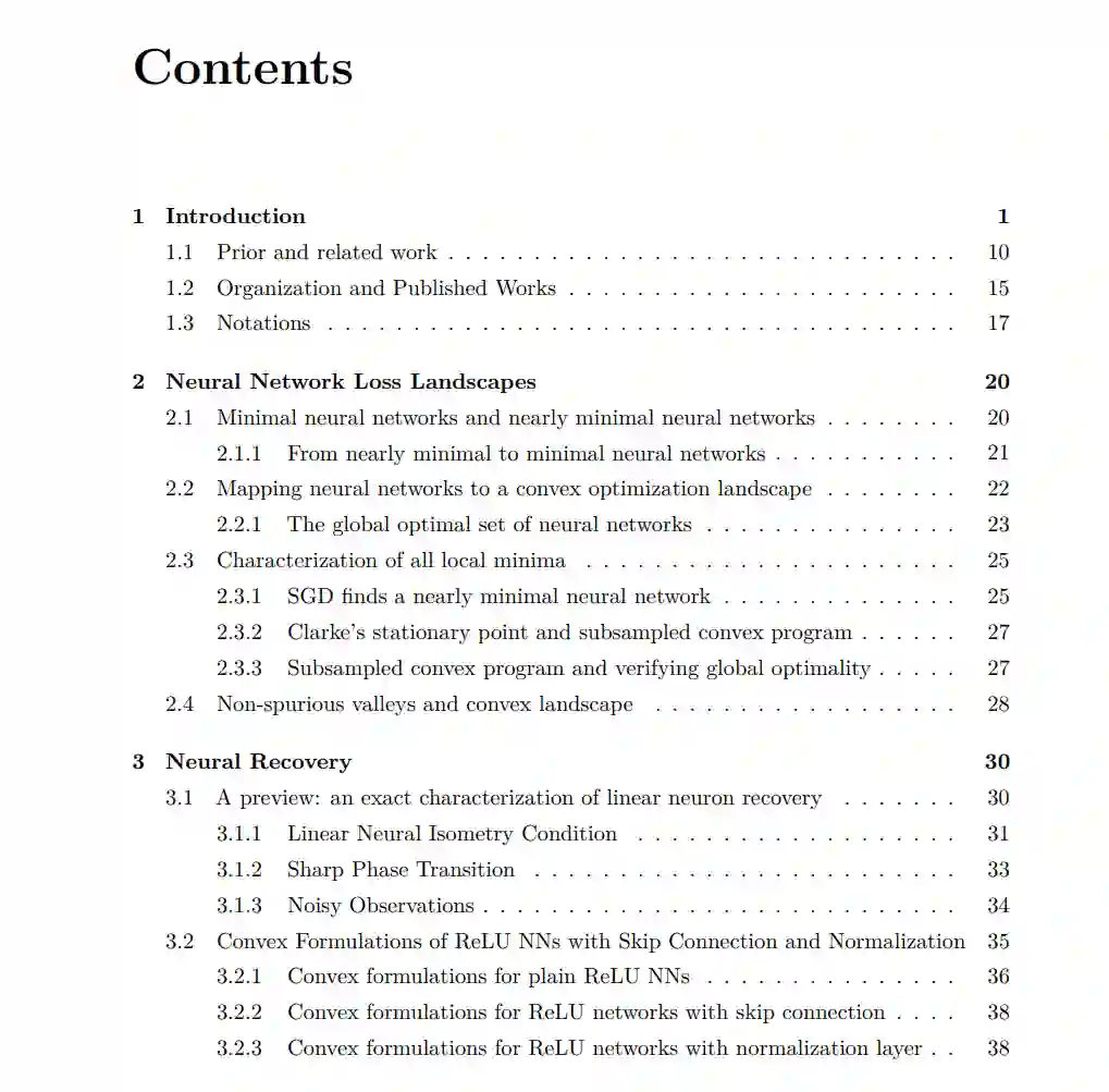 深度神经网络,尤其是大型语言模型(LLMs),在广泛的任务中展现了显著的成功;然而,其训练过程计算密集,需要大量的数据和计算资源。即使是对预训练的LLMs进行特定任务的微调,也常常会带来显著的计算成本。本论文从凸优化的角度,推进了对神经网络的理论理解和实际优化。我们从一个基础性结果出发,即两层ReLU网络的正则化训练问题可以重新表述为凸优化问题。这种凸优化公式化阐明了优化景观,刻画了所有全局最优解和Clarke驻点,并将模型性能与超参数选择解耦。通过与压缩感知中最稀疏线性模型恢复的类比,我们证明了过参数化神经网络本质上学习能够有效解释数据的简单模型,这一结论得到了在随机生成数据集中观察到的相变现象的支持,从而确立了其卓越的泛化能力。将强对偶性概念扩展到深度网络,我们提出了一种并行架构,使得在修改后的正则化下能够实现全局最优训练,同时也为标准架构中非零对偶间隙的存在提供了见解。通过将其与NP难的最大割问题联系起来,我们严格分析了训练正则化ReLU网络到全局最优的计算复杂性,得出了NP难性证明,并为特定类型的数据集开发了高效的多项式时间近似算法。即使在缺乏显式正则化的情况下,梯度流的隐式正则化也会驱动收敛到非凸最大间隔问题的全局最优解。我们通过利用随机几何代数进行大型语言模型(LLMs)的微调,展示了凸优化的实际应用。我们进一步通过凸几何和对偶性视角分析了用于训练两层ReLU网络的非凸次梯度流,表明其隐式偏差与凸正则化一致,并在对偶变量的某些条件下证明了其收敛到全局最优解。最后,我们提出了一种半定规划(SDP)松弛,以近似具有平方ReLU激活的两层网络中的Wasserstein梯度,确保在特定条件下的紧密松弛,并展示了其在贝叶斯推断和COVID-19参数估计中的有效性。这些发现弥合了关键的理论空白,并引入了具有深远意义的创新方法,推动了我们对神经网络训练过程的理解。