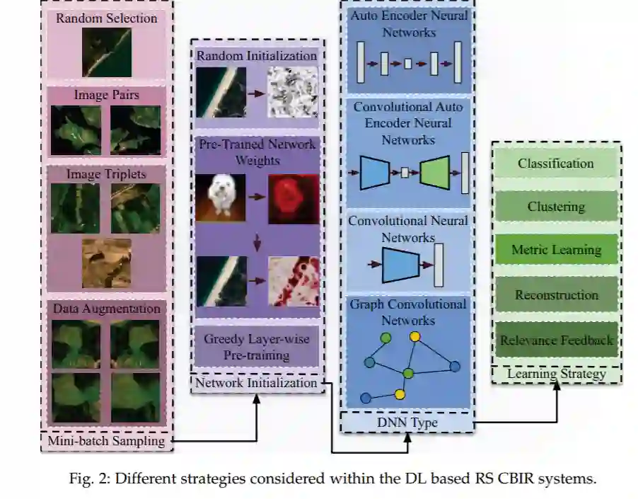 本章介绍了基于内容的遥感图像搜索与检索(CBIR)系统的最新进展,该系统用于从海量数据档案中快速、准确地发现信息。首先,我们分析了传统的基于手工制作的遥感图像描述符的CBIR系统在穷举搜索和检索问题上的局限性。然后,我们将重点放在深度学习(DL)模型处于前沿的RS CBIR系统的发展上。特别地,我们介绍了最新的基于DL的CBIR系统的理论特性,用于表征遥感图像的复杂语义内容。在讨论了它们的优点和局限性之后,我们提出了基于深度哈希的CBIR系统,该系统具有在巨大的数据档案中进行高效时间搜索的能力。最后,讨论了遥感CBIR最有前途的研究方向。