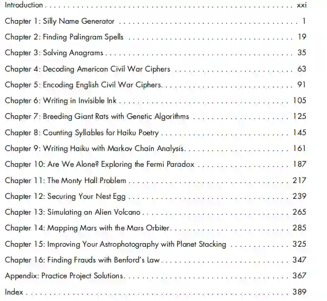 您可以将其视为第二本Python书。它旨在遵循和补充完整的初学者书籍或入门课程。本书中所有代码都带有注释和解释。这些项目适合那些想要使用编程来进行实验,测试理论,模拟或只是开心的人。在研究项目时,您将增加对Python库和模块的了解; 了解更多快捷键,内置功能和有用的技术; 并练习设计,测试和优化程序。 此外,您还可以将自己所做的与实际的应用程序,数据集和问题相关联。