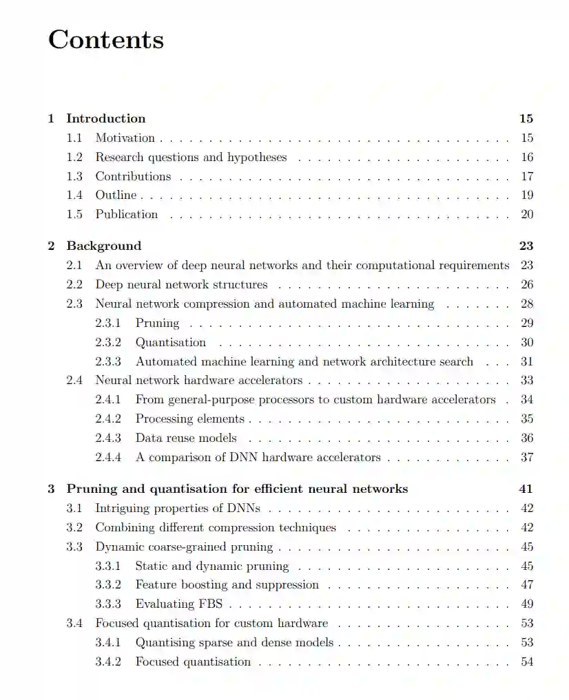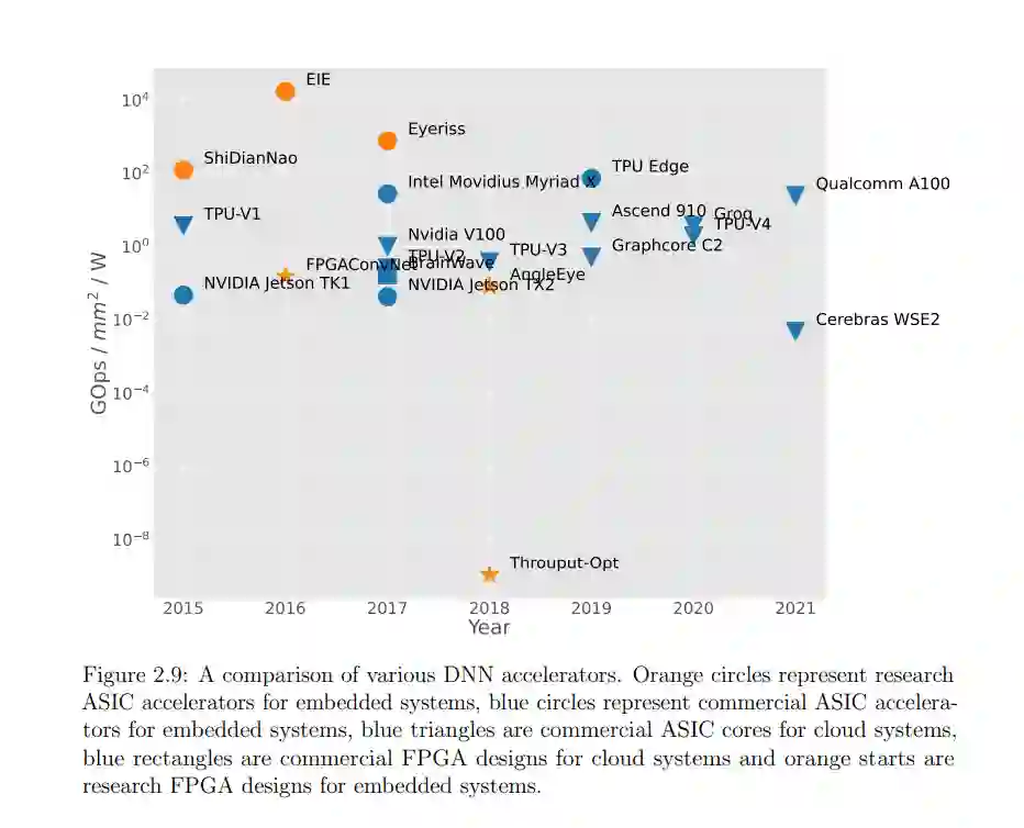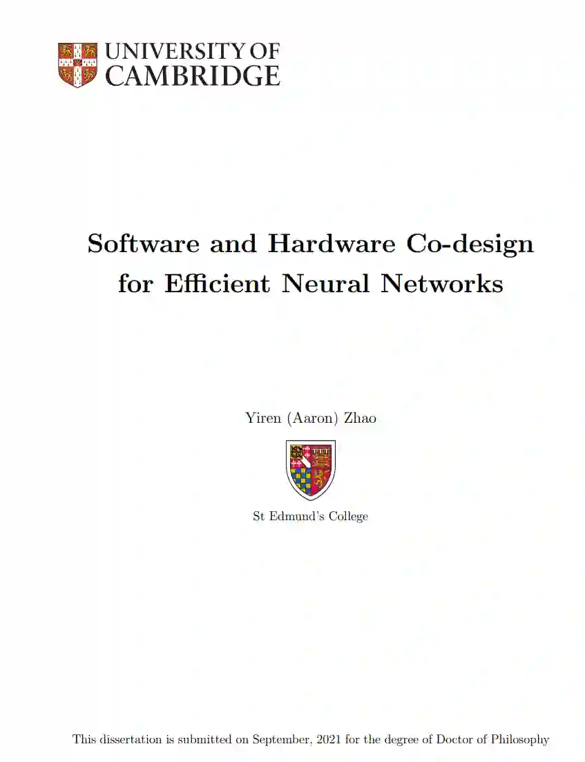 **深度神经网络(DNN)在许多领域都提供了最先进的性能,但这一成功是以高计算和内存资源为代价的。**由于DNN推理在边缘和云系统上都是一种流行的工作负载,因此迫切需要提高其能效。改进的效率使dnn能够在更大范围的目标市场中使用,并有助于提高性能,如果今天经常受到功率限制。本文采用软硬件协同设计的方法,提高了不同硬件平台上深度神经网络推理的性能。我首先展示了一些降低DNN运行时成本的软件优化技术。总的来说,我证明了模型大小可以减少34倍。不同风格的神经网络压缩技术的组合可以在缩小内存足迹方面提供成倍的收益。这些技术适用于在内存敏感的边缘设备上运行DNN推理。利用运行时和依赖数据的特征信息,我开发了一种动态剪枝策略,其性能明显优于现有的静态剪枝方法。所提出的动态剪枝不仅减少了模型大小,而且减少了GPU的乘累加操作数量。我还介绍了一种新的量化机制,该机制被调整为适合模型参数的自然分布,这种方法减少了DNN推断所需的位操作总数。然后,本文专注于使用自定义硬件加速DNN。构建了一个名为Tomato的框架,它在FPGA设备上生成多精度和多算法硬件加速器。软硬件联产流程从高层神经网络描述中部署硬件加速器,利用FPGA器件的硬件可重构性支持灵活的每层量化策略。然后,我证明了自动生成的加速器在延迟和吞吐量方面比最接近的基于FPGA的竞争对手至少高出2到4倍。为ImageNet分类生成的加速器以每秒超过3000帧的速度运行,延迟仅为0.32ms,使其成为延迟关键、高吞吐量的云端推理的合适候选。最后,我展示了自动化机器学习技术如何通过硬件感知来改进,以为新兴类型的神经网络和新的学习问题设置产生高效的网络架构。硬件感知的网络架构搜索(NAS)能够发现更节能的网络架构,并在图神经网络等新兴神经网络类型上实现显著的计算节省。在8个不同的图数据集上与7个人工和NAS生成的基线相比,所提出的低精度图网络架构搜索提高了大小-精度的帕累托前沿。此外,我演示了硬件感知的NAS可以应用于多任务多设备少样本学习场景。在具有各种硬件平台和约束的流行的少样本学习基准中,所提出的方法的性能明显优于各种NAS和人工基准。在5路1样本Mini-ImageNet分类任务上,所提方法在减少60%计算量的情况下,比最好的人工基线在准确率上提高了5.21%。