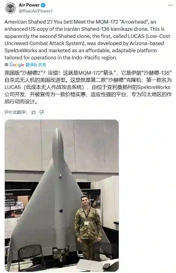 美国的回应:LUCAS效仿“沙赫德” 据美国媒体报道,其单价约为3.5万美元。 专为大规模蜂群攻击而设计。