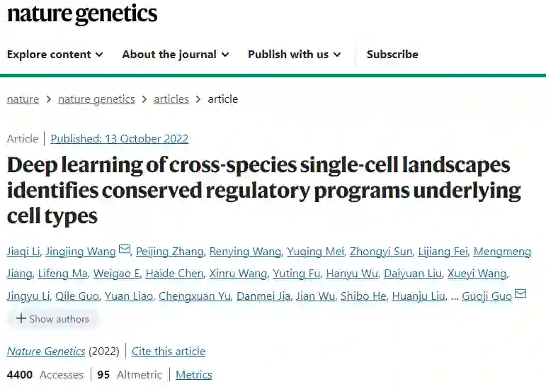 Li, J., Wang, J., Zhang, P. et al. Deep learning of cross-species single-cell landscapes identifies conserved regulatory programs underlying cell types. Nat Genet (2022). https://doi.org/10.1038/s41588-022-01197-7