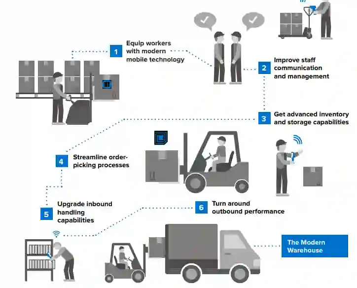 通往现代化仓库与配送中心的道路始于以下六个关键步骤。在整个过程中,通过集成尖端仓库技术构建更协同的信息架构,不仅能实现更精益灵活的运营,还能建立更安全可靠的运作体系。同样重要的是,增强的配送中心移动性可作为实施更高效可视化功能的基础。