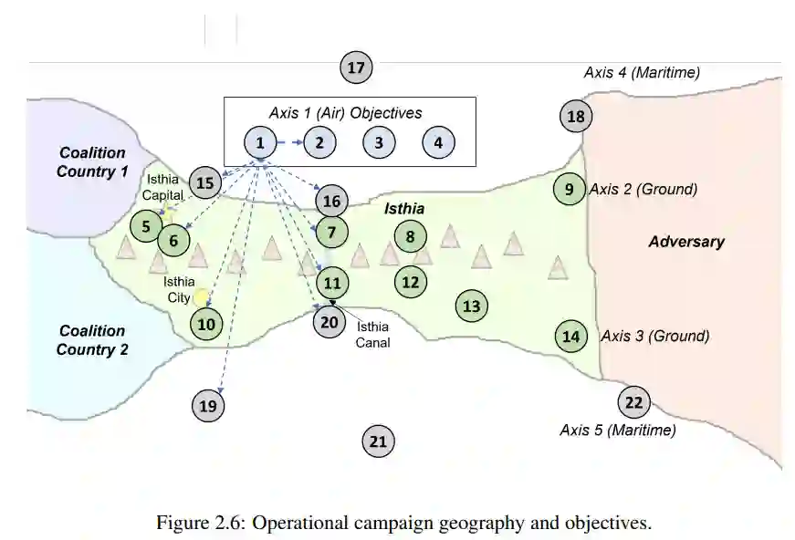 在第 2 章中,考虑了军事领导层准备并在必要时打击武装冲突的作战层面。开发了战役随机博弈(CSG),这是一种双人、贴现、零和随机博弈模型,用于军事战役中的动态作战计划。在每个阶段,博弈者都要管理多个指挥官,由他们下令对可通过现有补给线到达的目标采取军事行动。当为控制一个目标而发生战斗时,其随机结果取决于其他目标的控制所提供的行动和有利支持。每个玩家的目标都是最大限度地增加他们所控制目标的累计数量,并根据其关键性进行加权。为了解决这一大规模随机博弈,利用后勤和军事行动指挥与控制结构,推导出其马尔可夫完美均衡的属性。证明了最优值函数相对于部分有序状态空间的等调性,这反过来又导致了状态和行动空间的显著缩小。还通过消除受支配的行动和研究每次迭代求解的矩阵博弈的纯均衡来加速沙普利值迭代和范德瓦尔算法。在一个案例研究中展示了均衡结果的计算价值,该案例描述了一场具有地缘政治影响的作战级军事战役。分析揭示了均衡状态下博弈参数和动态之间复杂的相互作用,为战役分析师、作战计划人员和领导层提供了新的军事见解。