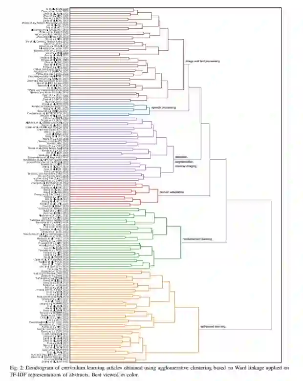 **从简单的样本到困难的样本,以一种有意义的顺序,使用课程学习可以提供比基于随机数据变换的标准训练方法更好的性能,而不需要额外的计算成本。**课程学习策略已成功地应用于机器学习的各个领域,广泛的任务。然而,必须找到一种方法来对样本从容易到难进行排序,以及正确的节奏函数来引入更难的数据,这可能会限制课程方法的使用。在本综述中,我们展示了这些限制是如何在文献中被处理的,并且我们为机器学习中的各种任务提供了不同的课程学习实例。我们根据不同的分类标准,手工构建了一个多角度的课程学习方法分类。我们进一步使用凝聚聚类算法建立课程学习方法的层次树,将发现的聚类与我们的分类方法联系起来。最后,我们对未来的工作提出了一些有趣的方向。